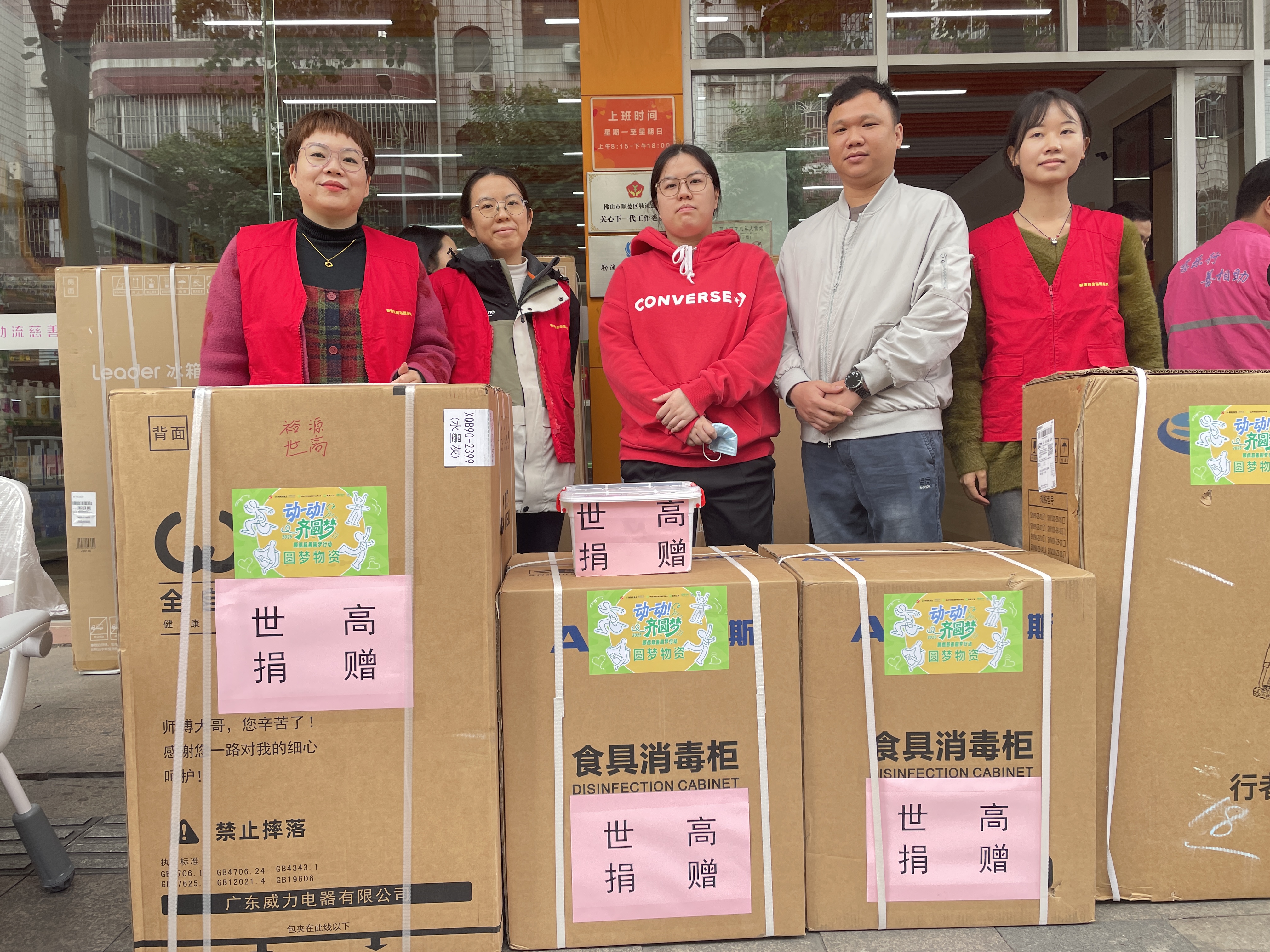 圖片說明:員工志愿者以及捐贈(zèng)物資